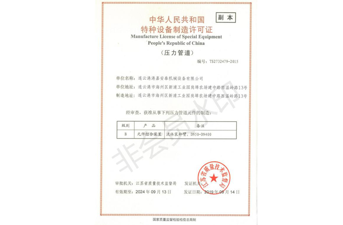 獲得了特種設備制造許可證(壓力管道)、防爆合格證等多項證書